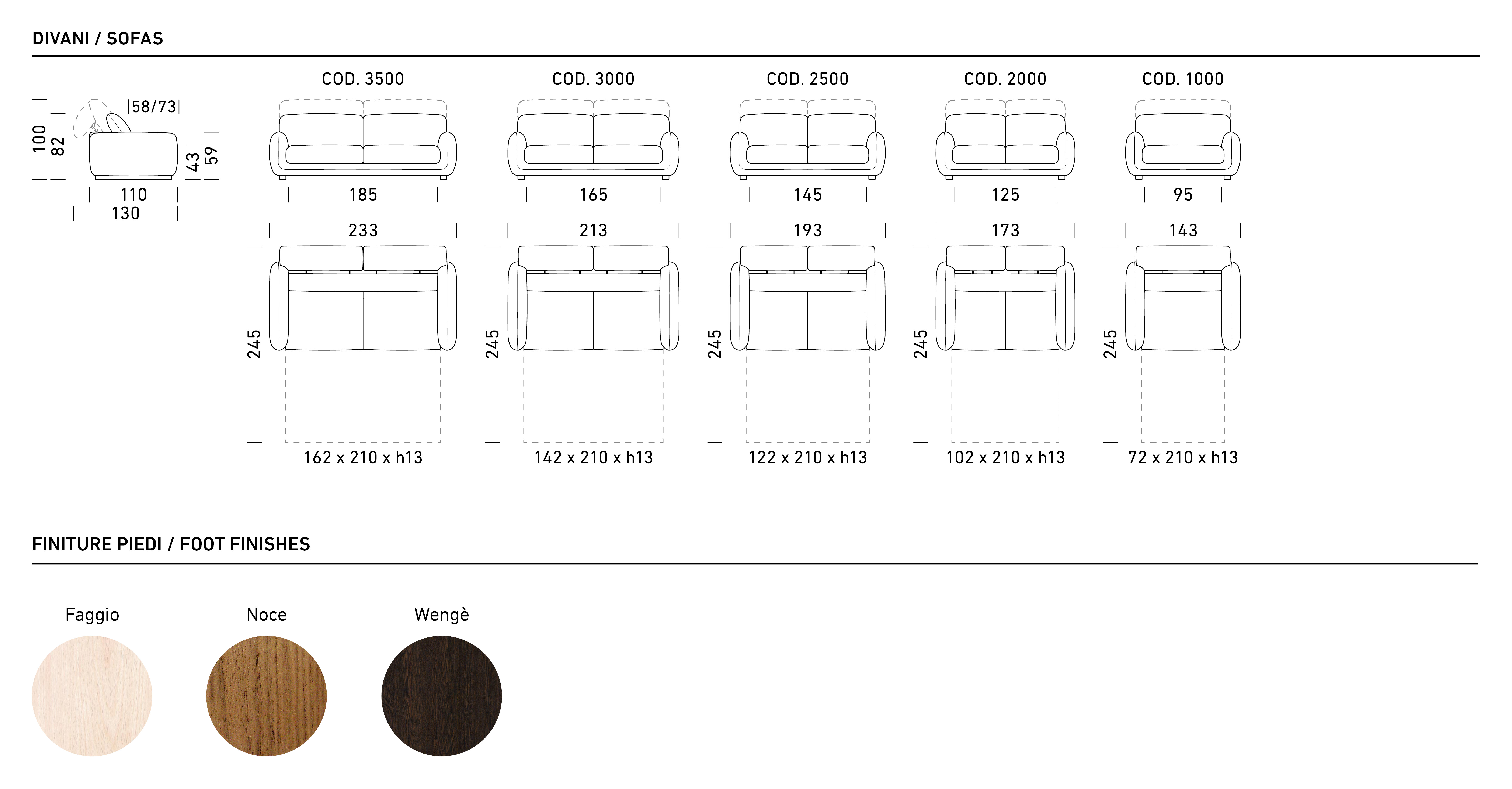 Ножки: выс. 5 см из дерева, доступны в различных вариантах отделки.