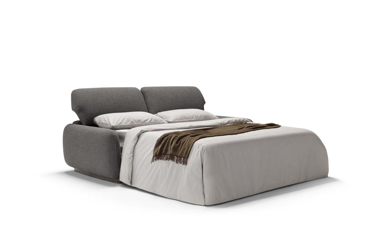 Раскладной диван-кровать с раздвижными спинками, предлагающий два варианта высоты спинки и два варианта глубины сиденья.