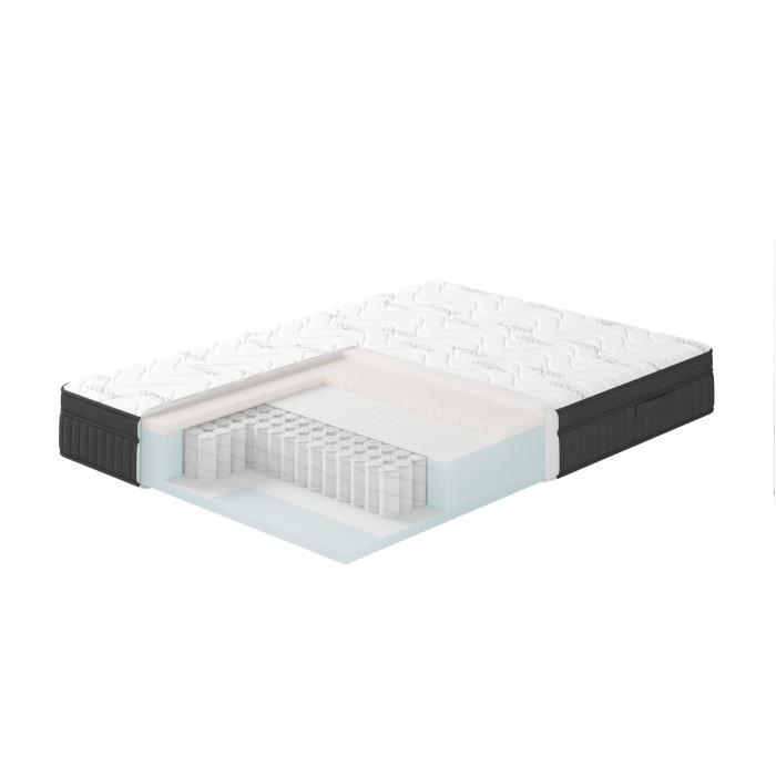 Боковая часть чехла (бордер матраса) изготовлена из аэрационной сетки 3D " Kambric ",способствует улучшению вентиляции внутри матраса, испарению излишней влаги и созданию идеального микроклимата во время сна . Ручки по периметру матраса предназначены для его переворачивания.