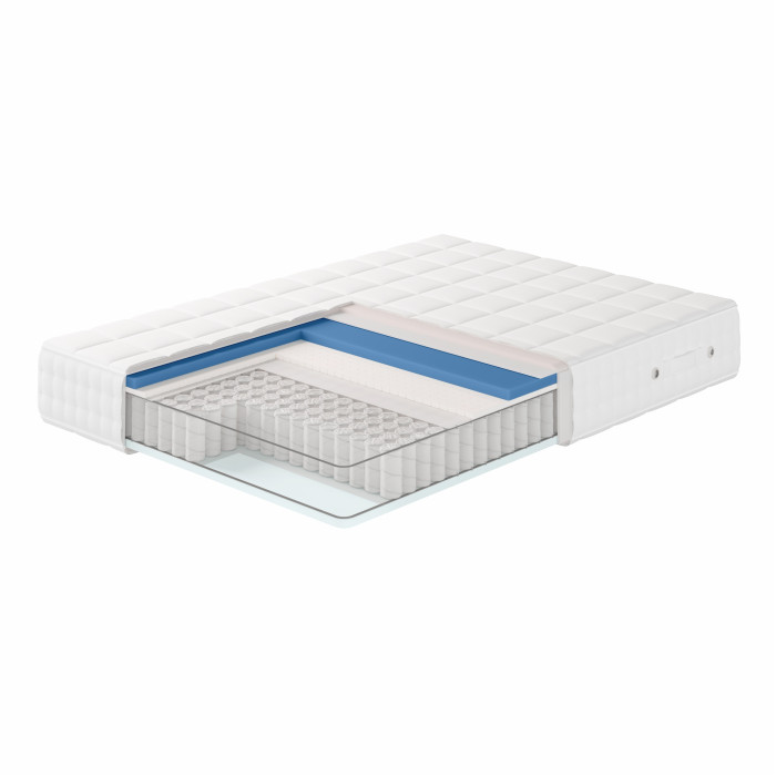 Матрас NEXT 2 (Некст 2) изготовлен на основе блока независимых пружин TFK 256 шт/м2, который обеспечивает ортопедический эффект за счет точечной поддержки позвоночника. С обеих сторон блока независимых пружин располагаются слои матраса, регулирующие его жесткость. Стеганный чехол повышенной комфортности, делает матрас более долговечным, а поверхность для сна более мягкой. Окантовка чехла позволяет избежать смещения и деформации слоев матраса.