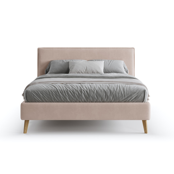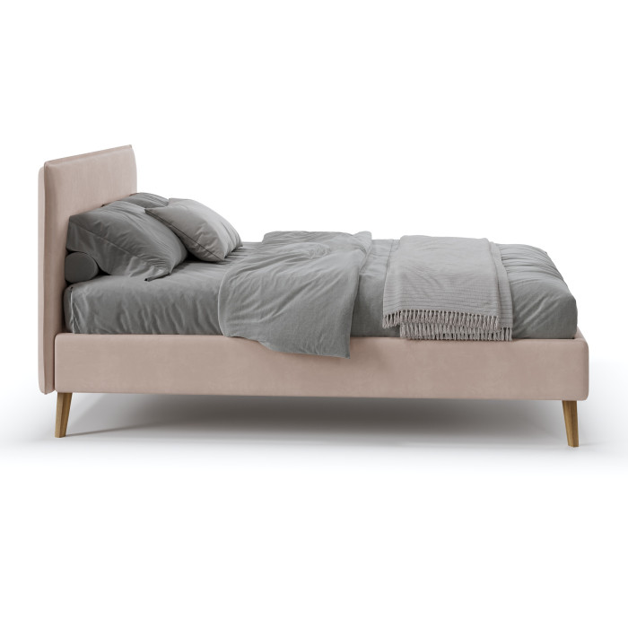 Данная модель позволяет использовать ее в небольшом пространстве, за счет узких царг. Высокие деревянные опоры придают кровати легкость и элегантность. В комплект входит ортопедическое основание. Чехол с царг съемый, что визуально объединяет осноание и делает его литым без визуальных стыков.