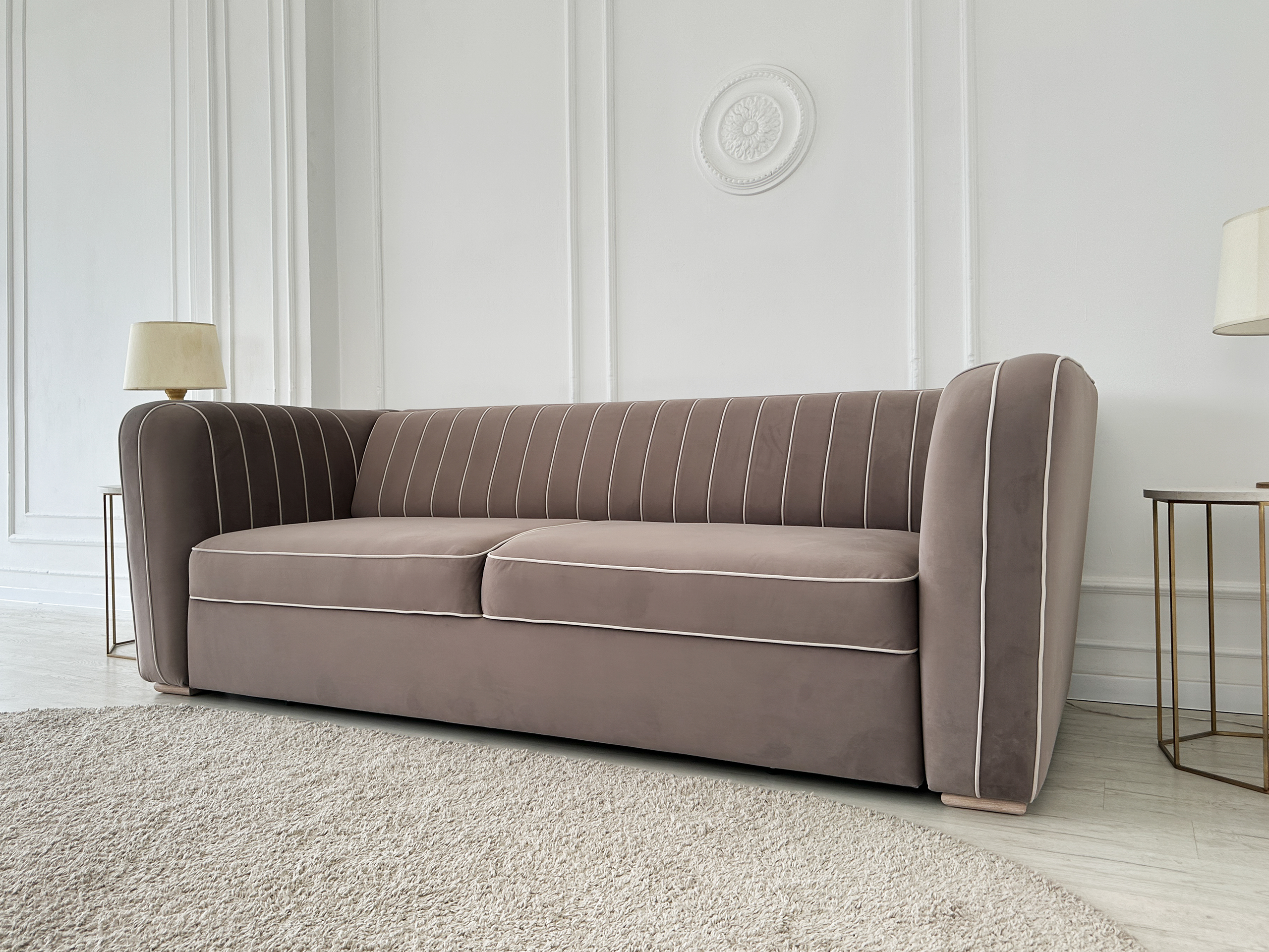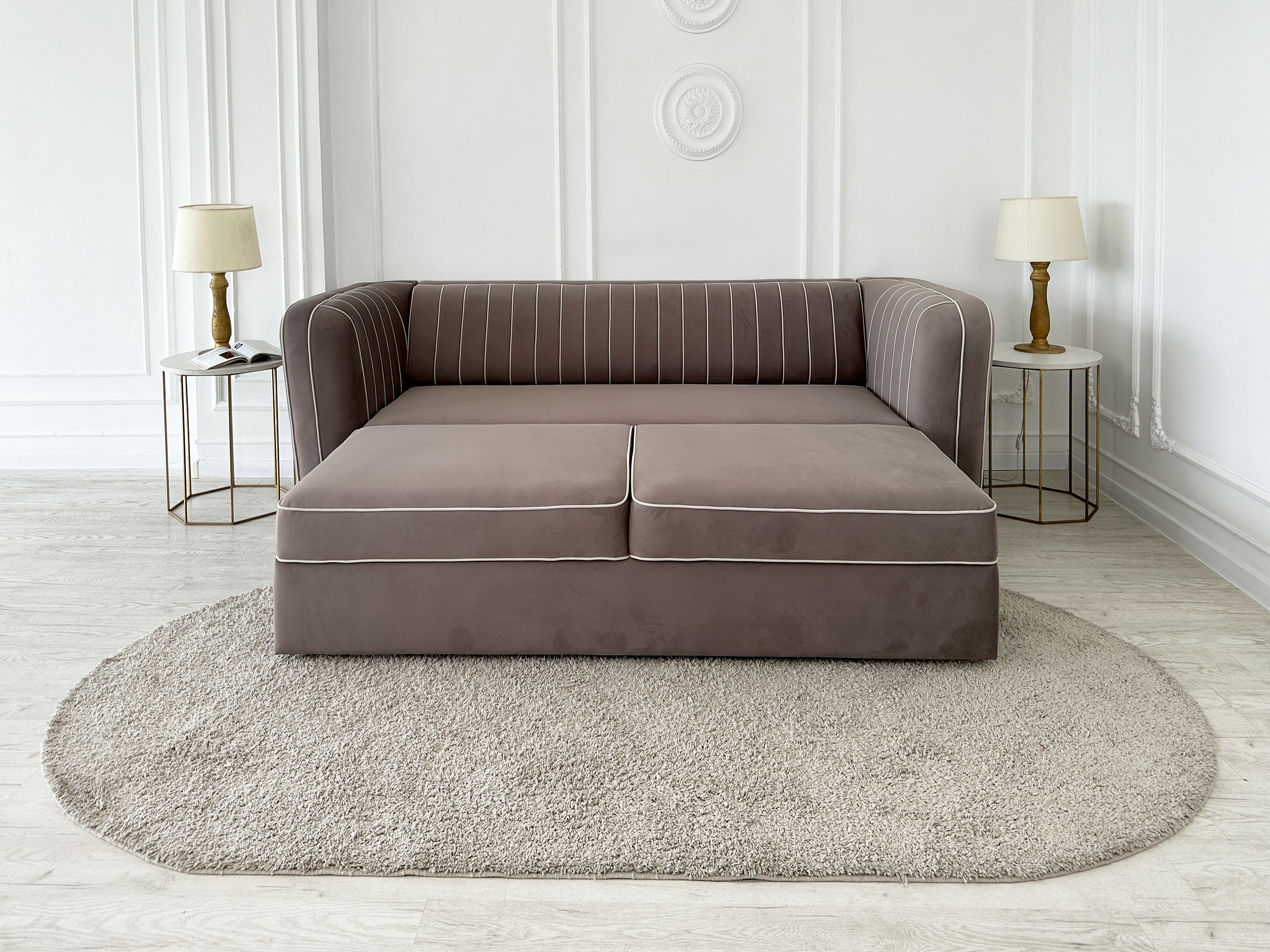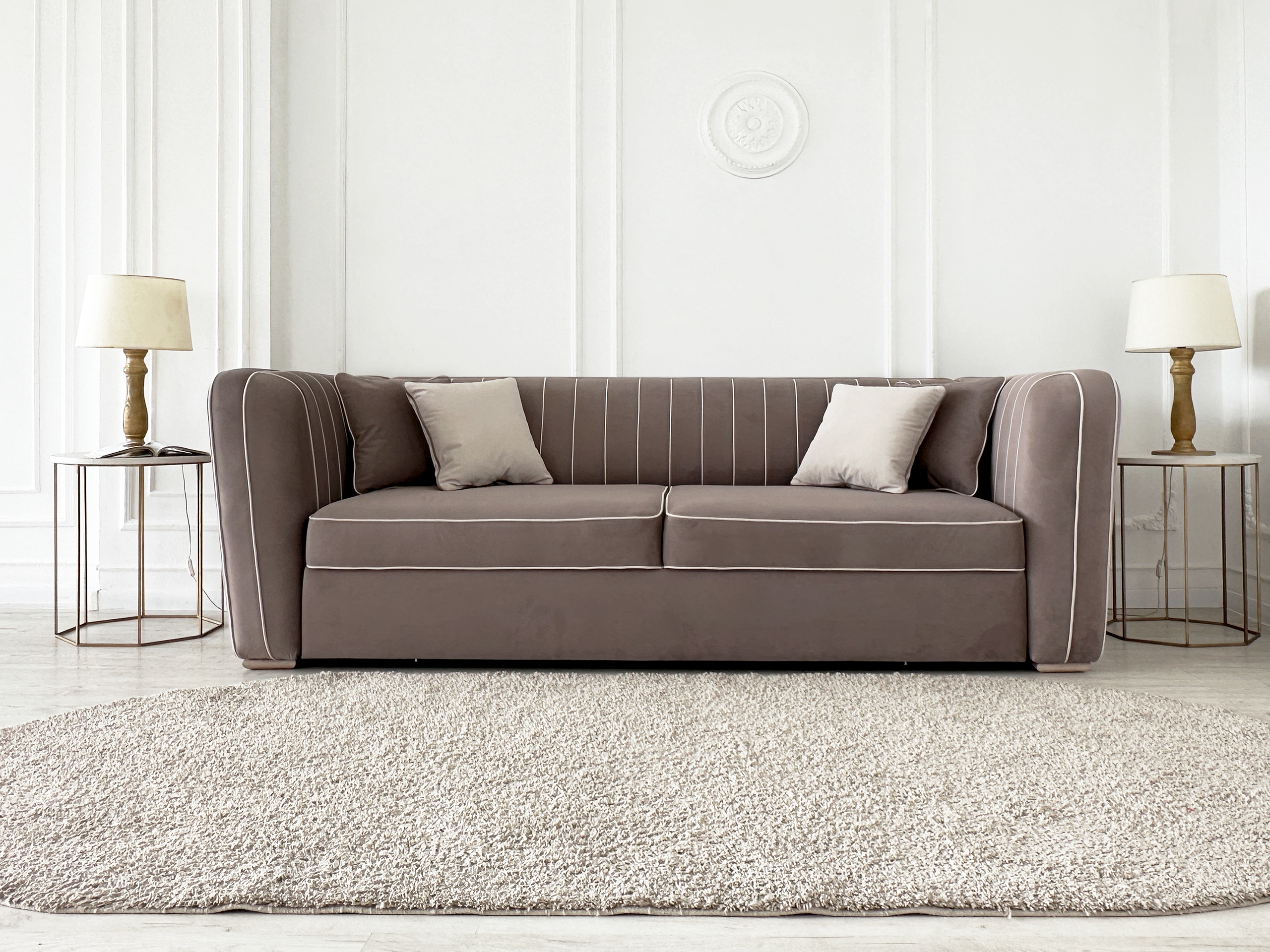 Диван Гудено привнесет нотку Италии в ваш интерьер. Плавные линии, декор из очертаний контрастного цвета прекрасно подойдут как к классическому интерьеру, так и современному. Диван эстетичен со всех сторон. Будет отлично смотреться по центру комнаты. В Гудено мягкая и удобная спинка. Увеличенная глубина посадочного места, удобный наклон спинки, скругленная спинка обеспечат уютный отдых. В диване Гудено установлен польский механизм трансформации пума. И при такой небольшой глубине в 102 см, у нас широкое спальное место в 148 см.
