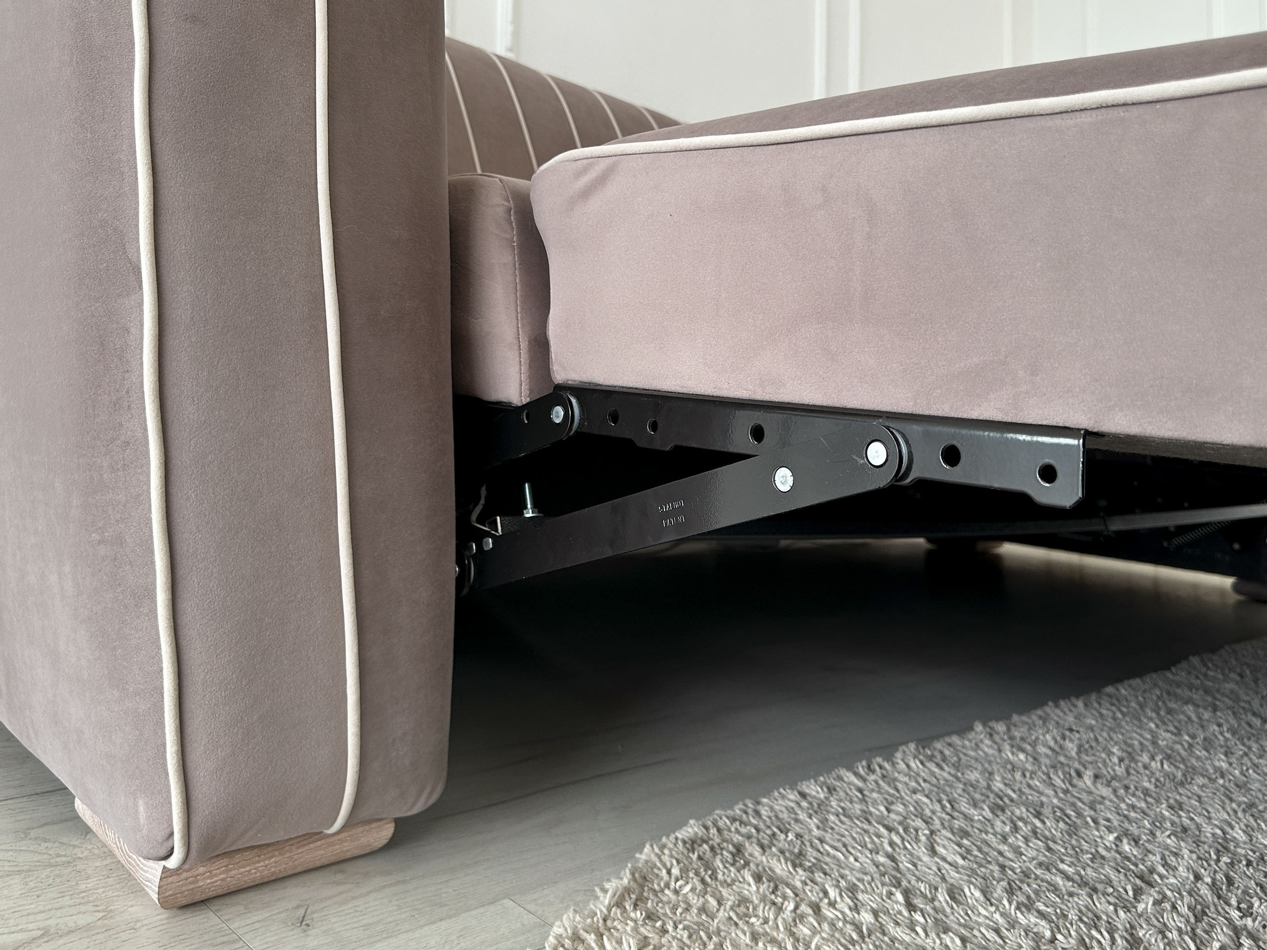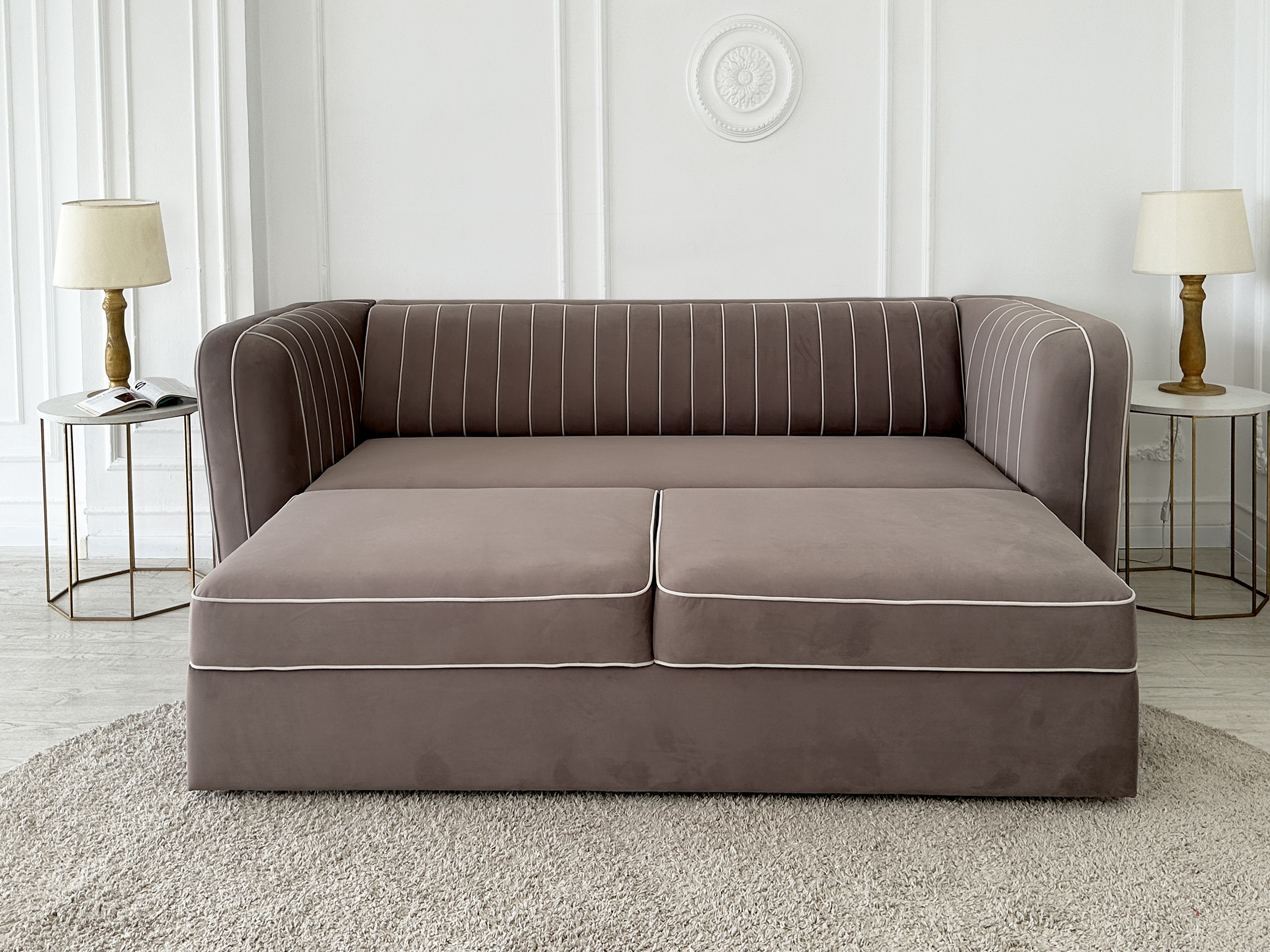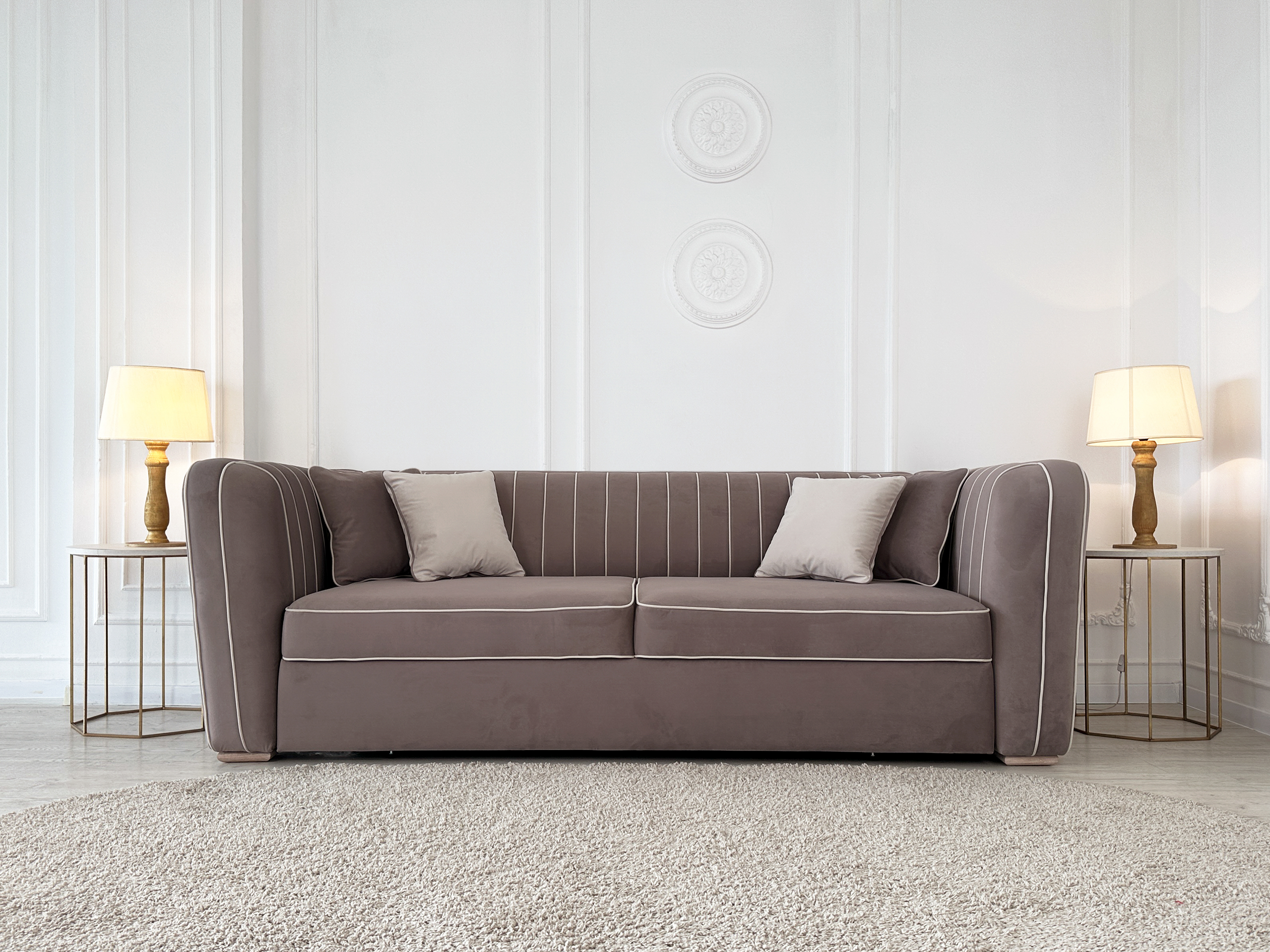 Диван Гудено привнесет нотку Италии в ваш интерьер. Плавные линии, декор из очертаний контрастного цвета прекрасно подойдут как к классическому интерьеру, так и современному. Диван эстетичен со всех сторон. Будет отлично смотреться по центру комнаты. В Гудено мягкая и удобная спинка. Увеличенная глубина посадочного места, удобный наклон спинки, скругленная спинка обеспечат уютный отдых. В диване Гудено установлен польский механизм трансформации пума. И при такой небольшой глубине в 102 см, у нас широкое спальное место в 148 см.