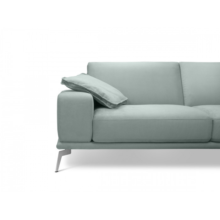 Благодаря тому, что диван оснащен высокими и тонкими опорами, под ним легко прибираться и протирать пыль. Модель дивана так же доступна в прямом и дополнительном угловом исполнении. В модели дивана доступны два цветовых решения опор - светлые сатиновые и черный матовый.