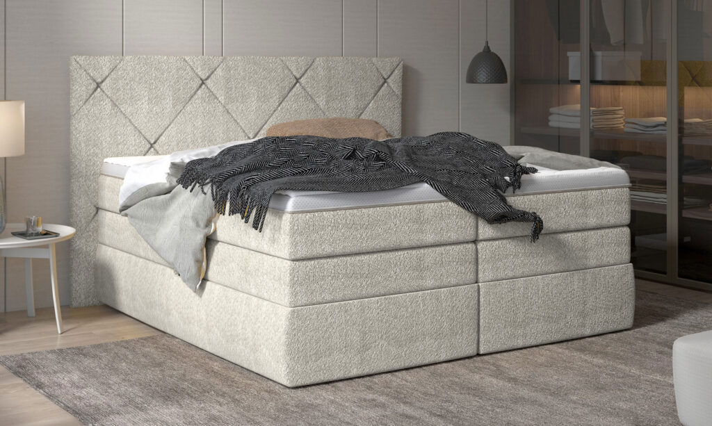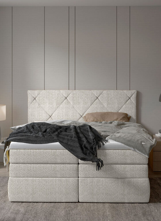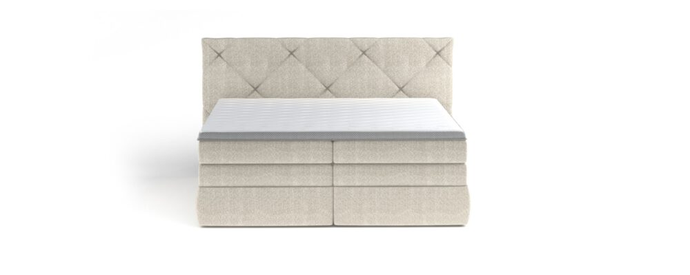 Классическая кровать из пружинной серии, оснащенная двумя большими контейнерами для подушек, одеял и постельного белья. Изголовье этой модели отличается проходящей друг через друга строчкой, а два вида матрасов обеспечивают необыкновенный комфорт отдыха.