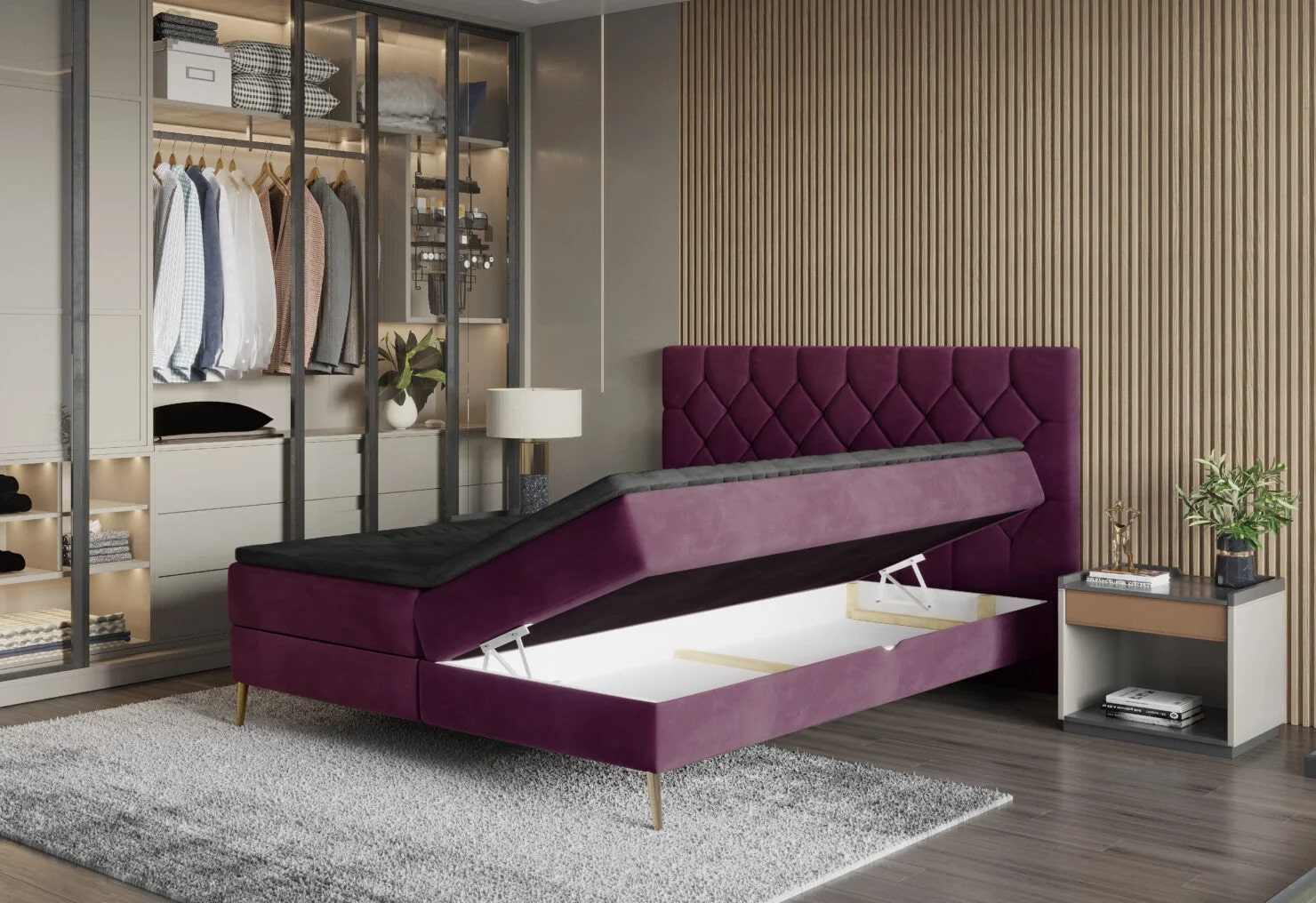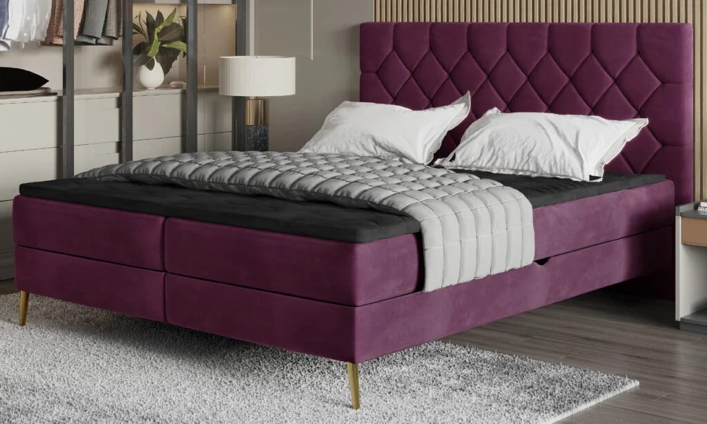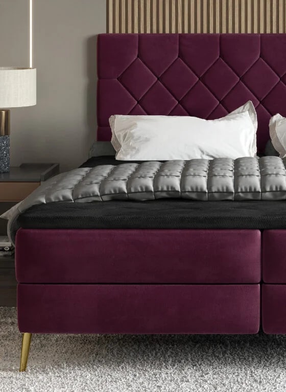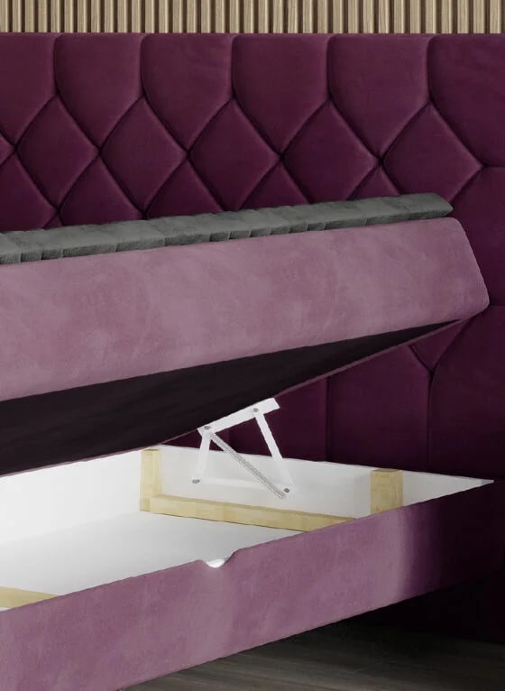 Лара – кровать, которая привлекает внимание мягким каркасом и стильным изголовьем, украшенным ромбовидной строчкой. Элегантный характер мебели подойдет как к классическому, так и к современному интерьеру. Кровать оснащена матрасом Bonnell, обеспечивающим исключительный комфорт во время использования. Наличие двух контейнеров позволит разместить дополнительный комплект постельного белья.
