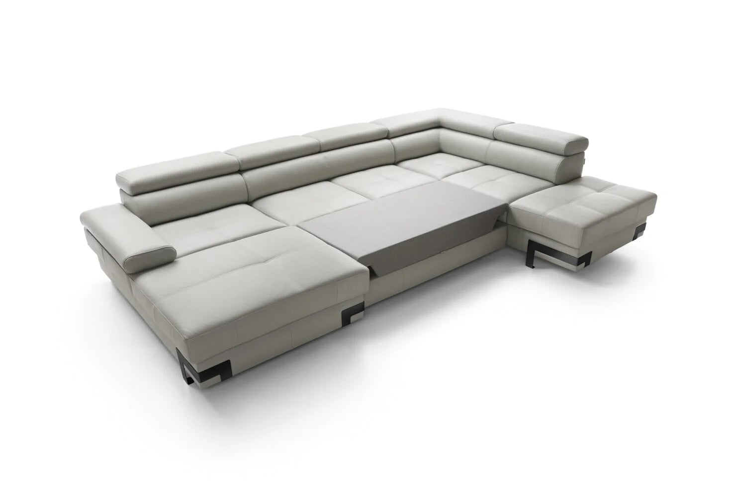Emporio – это современный дизайн, комфорт и функциональность. Удобная спинка с регулируемыми подголовниками и подвижным подлокотником позволит каждому домочадцу отдыхать по своим индивидуальным предпочтениям. Функция сна – решение для всех, кто ищет дополнительное место для отдыха, а большой контейнер для постельного белья, спрятанный в пуфике, позволит хранить дополнительный комплект постельного белья или одеяло. Emporio ставится на высокие оригинальные ножки, подчеркивающие характер и линии мебели.