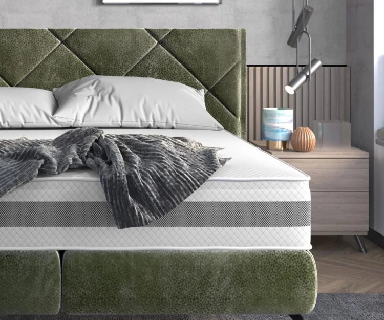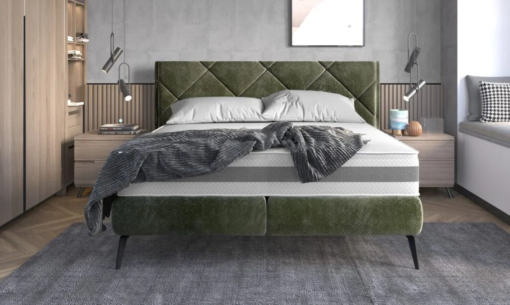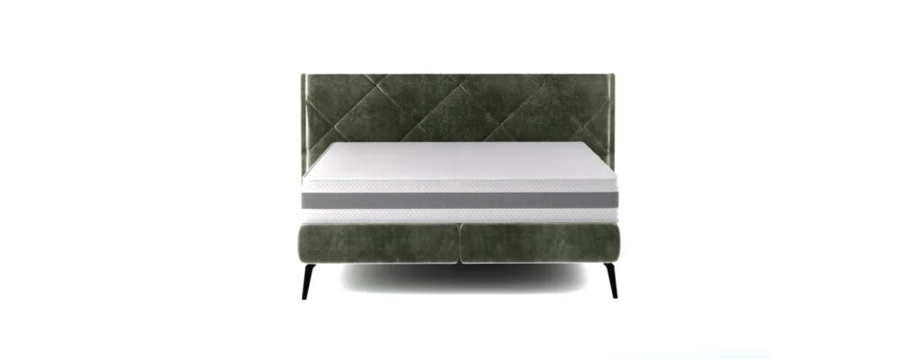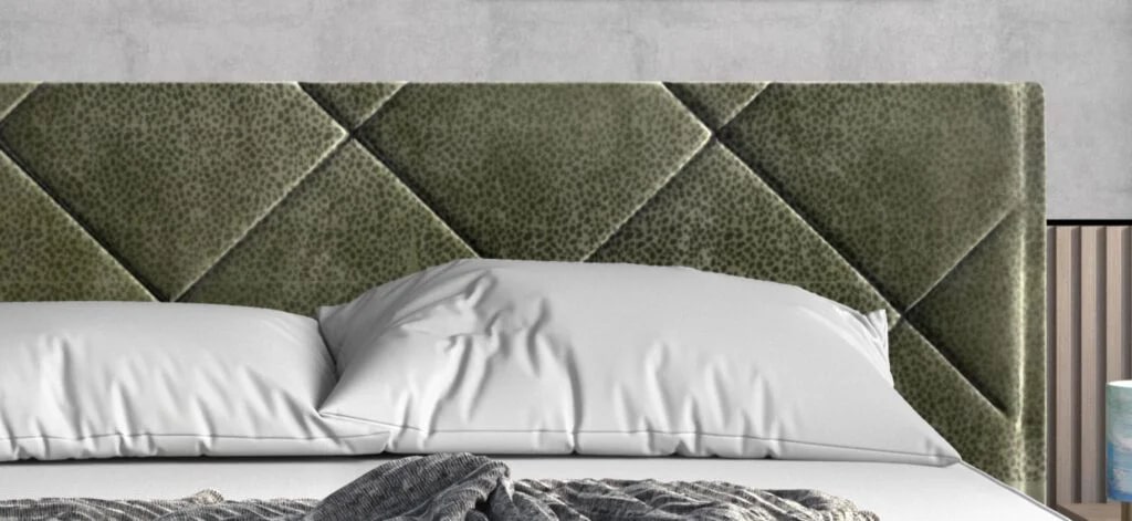 Кровать, которая привлекает внимание мягким изголовьем. Стежки проходят друг через друга, создавая мозаику из ромбов. Эта модель хорошо впишется в любой интерьер и наверняка найдет множество сторонников благодаря своему универсальному виду.