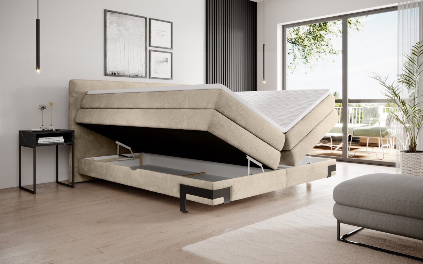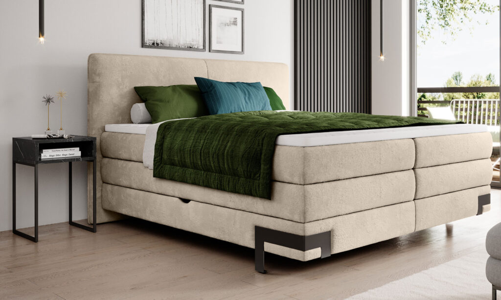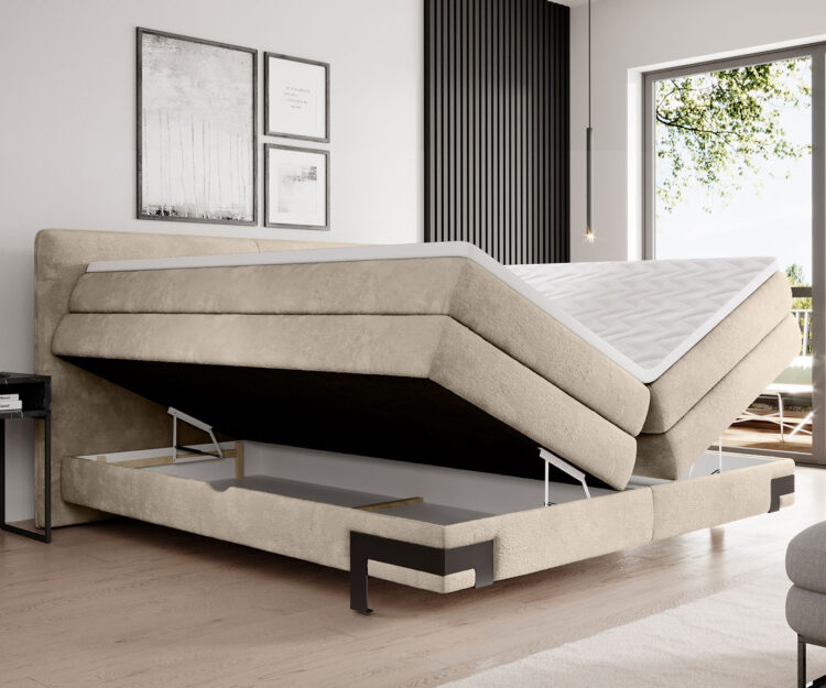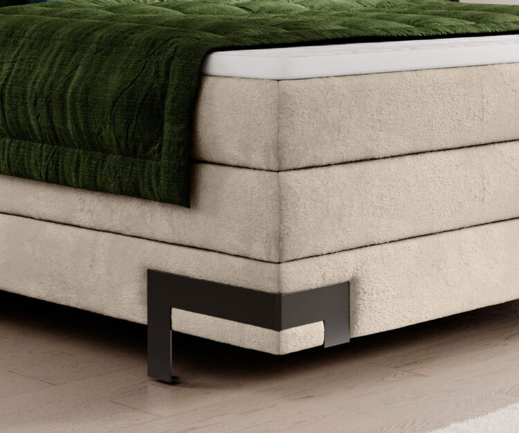 Классическая пружинная модель с прямым изголовьем. В двух больших контейнерах можно разместить одеяла, подушки или дополнительный комплект постельного белья. Ножки – характерный элемент этой кровати. Они придают фигуре легкость, несмотря на ее большие размеры.